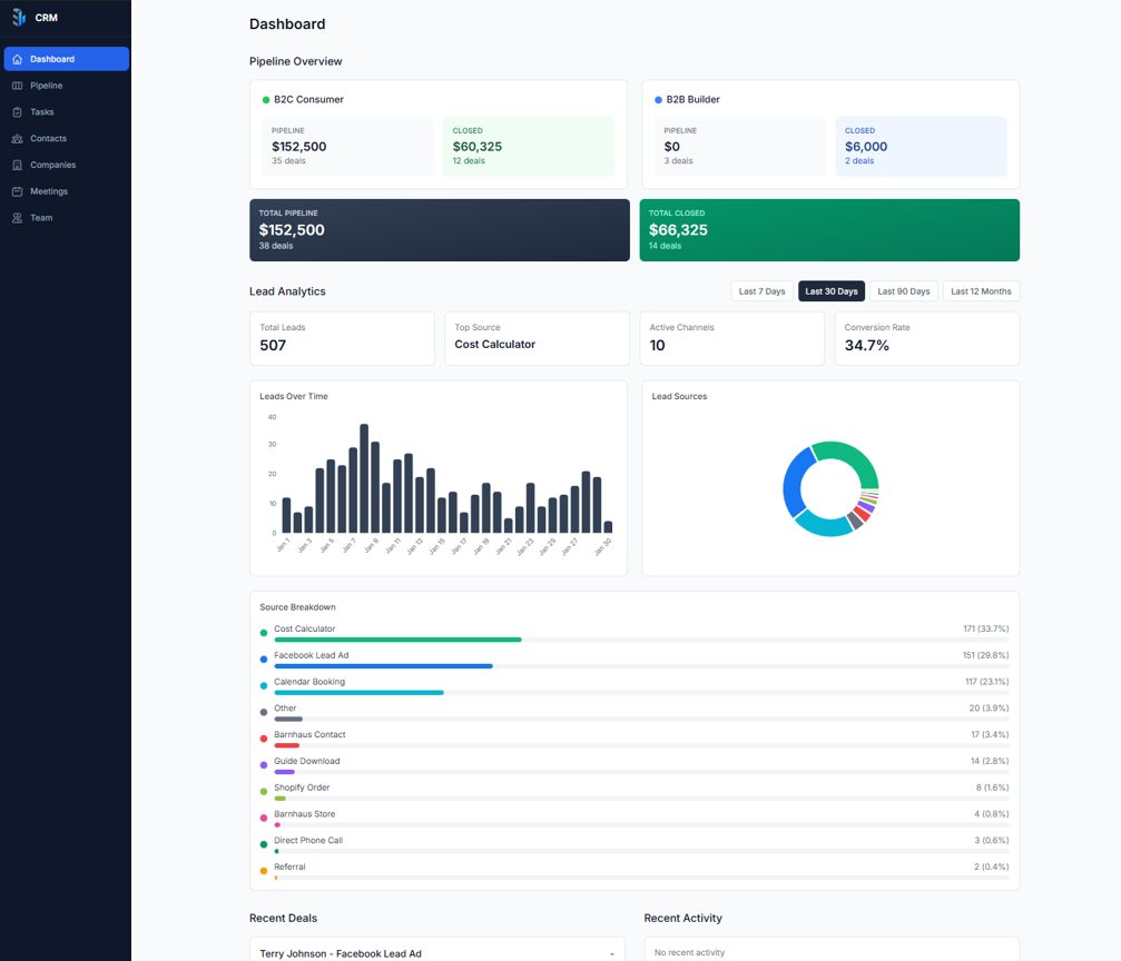 We help builders and contractors generate consistent, qualified leads through Facebook Ads, Google Ads, SEO, and websites that convert. Plus, you get access to our Lead Tracking Dashboard to see exactly where every lead comes from.